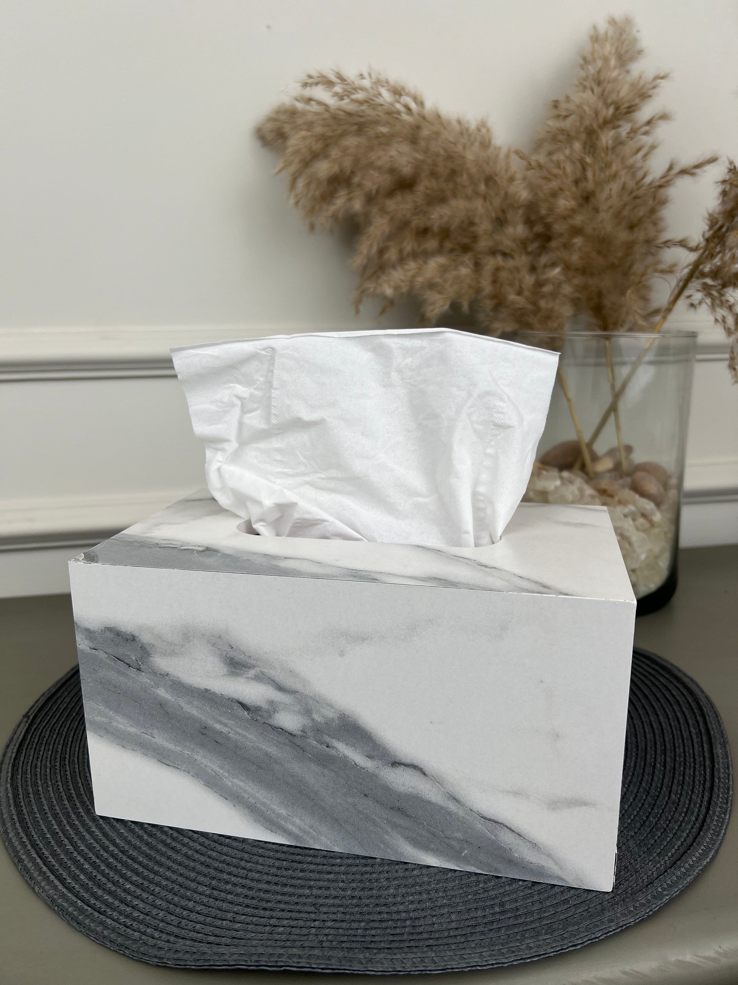 Marble-Textured Wooden Tissue Box – Elegant and Functional Décor